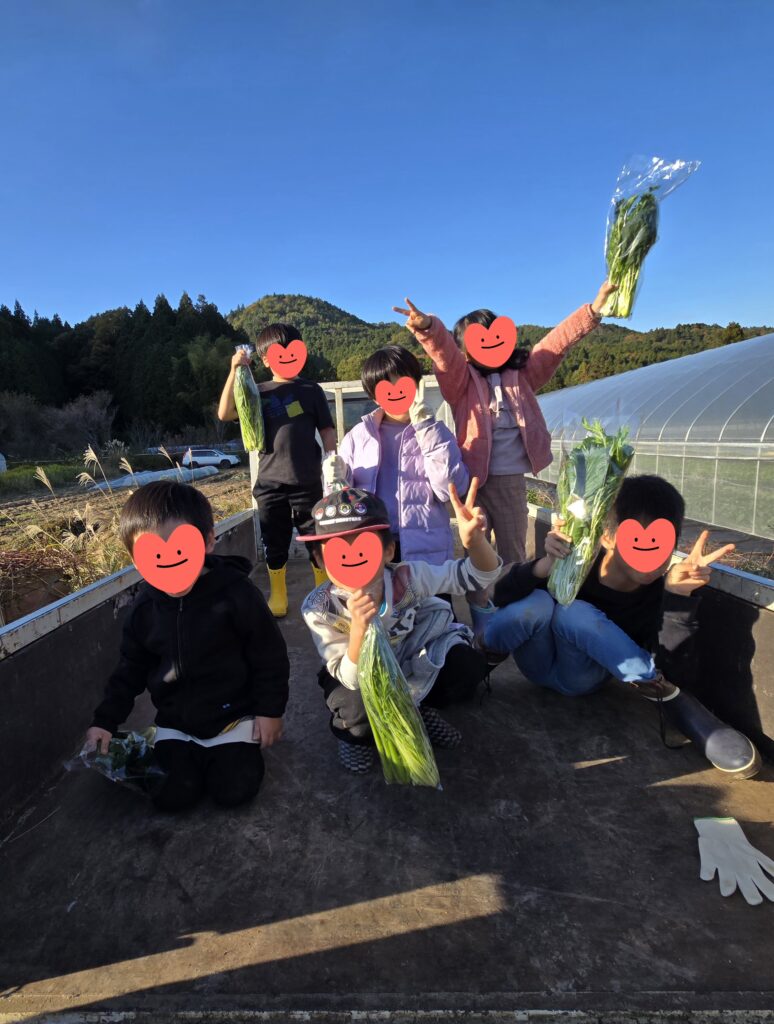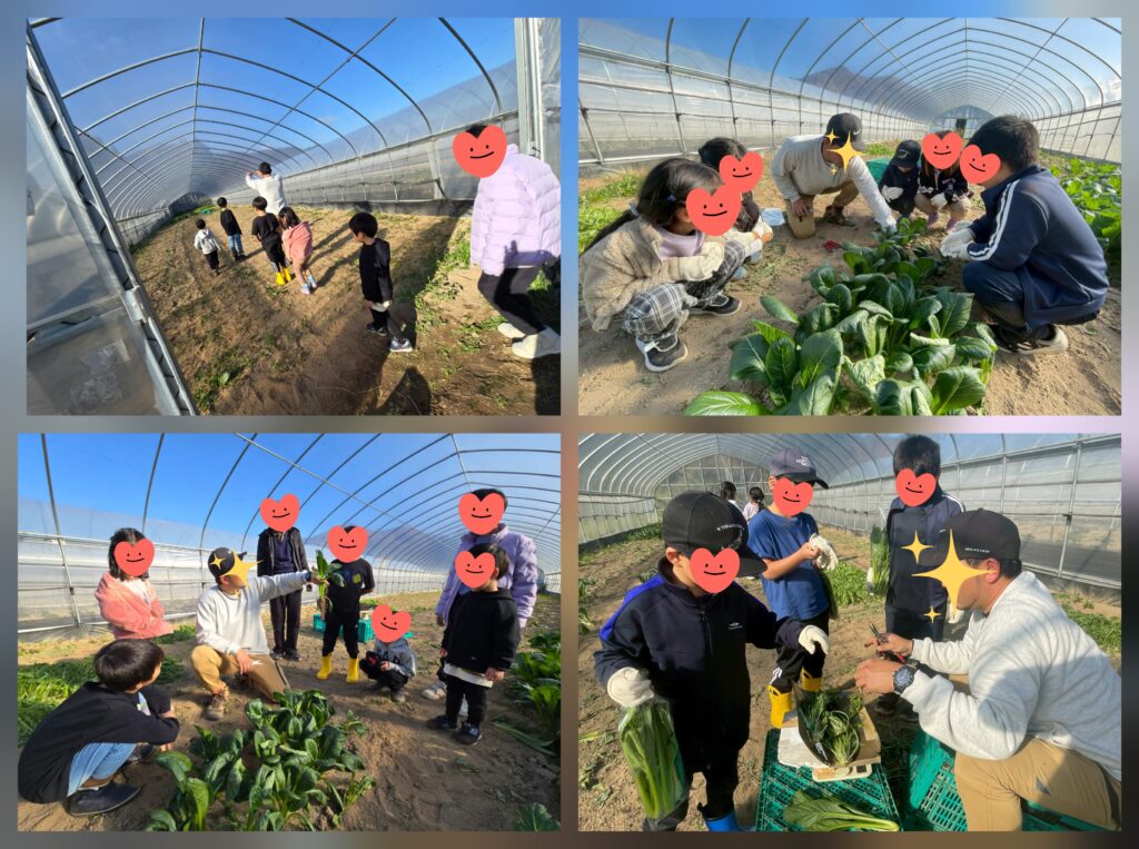 他にもトラックの荷台に乗せてもらえたり、集卵体験をさせて頂いたり、子ども達にとってとても貴重な体験となった1日でした。自宅に持ち帰ったおみやげの野菜や卵を「自分でとったよ~🥬」「晩ごはんはこれで作って~🥚」と家族の方に渡している姿がとても微笑ましかったです😘