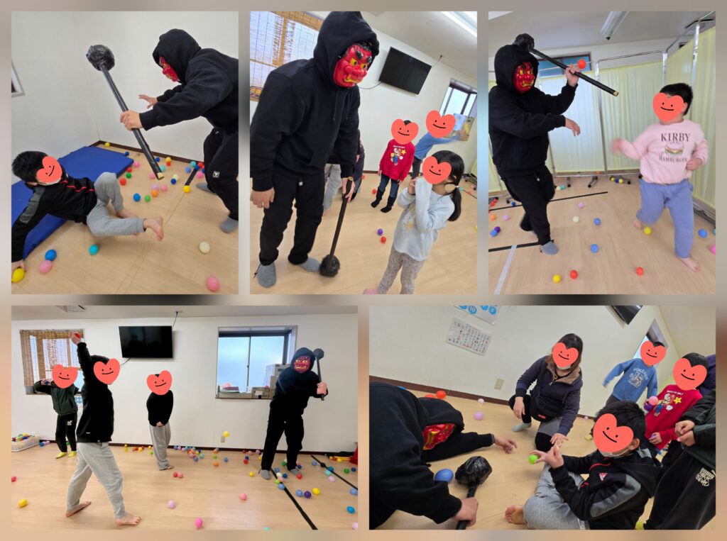 今年もやってきました。。あの時間が。。「ダースベイダーのテーマ」がかかると「うおぉぉぉっ!」と赤鬼登場です👹しかし泣く子はおらず。。みんな次々とカラーボールを投げてあっという間にやっつけました~!(今年は子ども達の戦闘力が高い~😅)