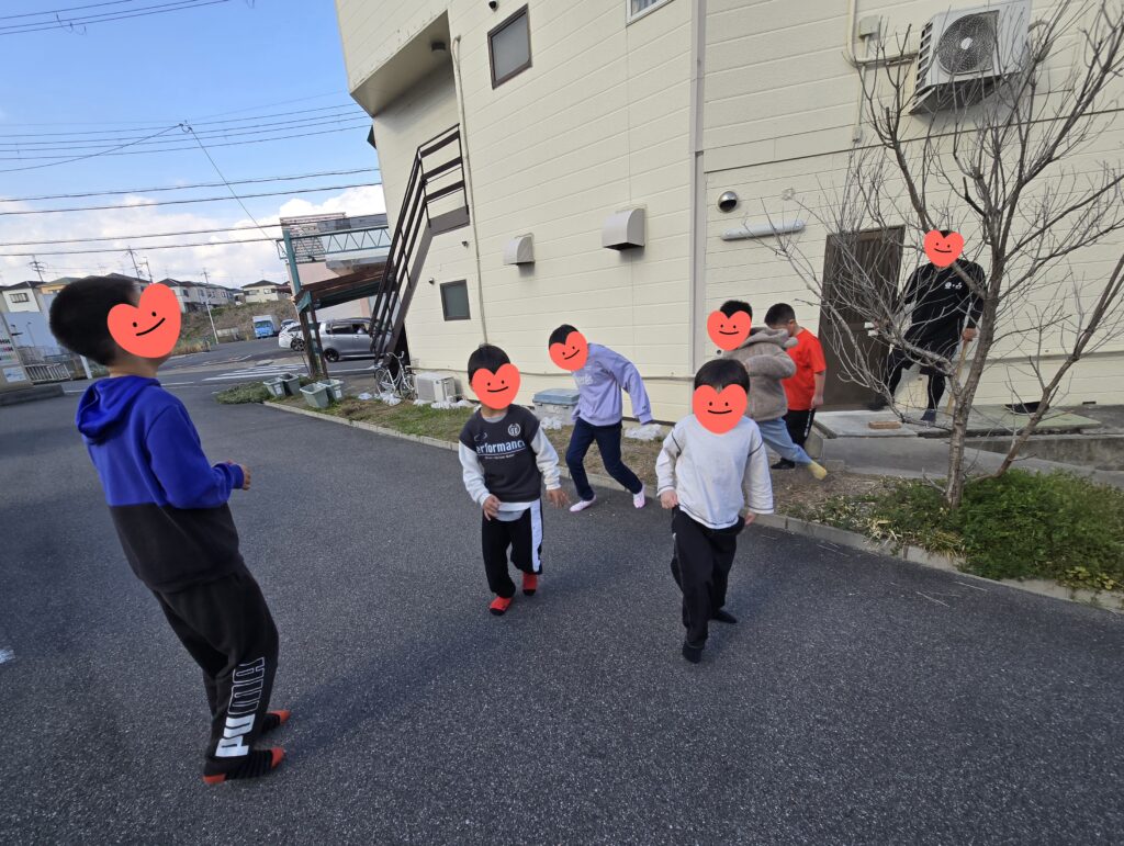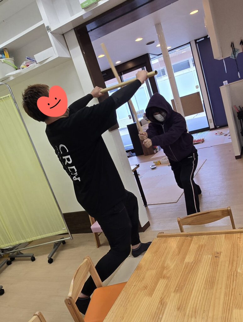不審者対応の避難訓練をしました。職員さんから説明を受けた後、実際に不審者が室内に入ってきたら近くのドアからすぐに逃げる訓練。日頃からの訓練はとても大切です。