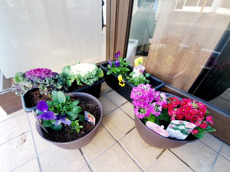 子ども達に花植えをしてもらいました!プランター、スコップ、じょうろ、敷石、お花を買いに行くところからひとりひとり好みの形や色や重さを選んでもらい、計算できる子はレジでお金も払ってもらいました。プランターにスコップを使って …