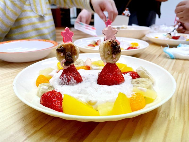 桃の節句にちなんだおやつ作りをしました🎎力を入れずにそっとフルーツを切って🍓🍌みんなで順番を変わりながら生クリームを泡立ててフルーチェと混ぜます(#^^#)チョコペンでおひなさまの顔を描くのが難しい~💦そしていよいよ部屋 …