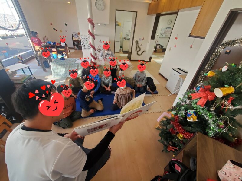 たくさんの子ども達がクリスマス会にやって来てくれました🎅毎年恒例になりました職員さんのハンドベル演奏🎵みんな静かに聞いてくれて知っている曲が流れだすと自然に口ずさんだりベルに近づいて音色を楽しむお友達もいました😊 室内で …