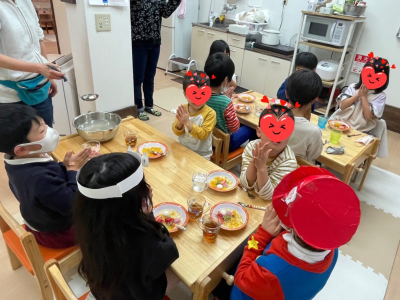 避難訓練をしました(ー_ー)!!「今、突然地震がきたらどうする?」「テーブルの下に隠れる!」「どうして?」「頭が痛くなっちゃうから!」小さな子達も園で教えてもらってるから「避難する事」がなんとなくわかっている様子。はじめ …