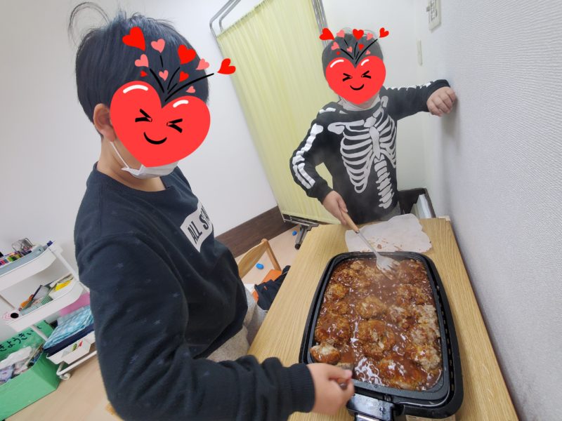 昼食クッキングで「煮込みハンバーグ」「ポテトサラダ」「オニオンスープ」を作りました😊 ハンバーグ班は玉ねぎのみじん切りに挑戦!お肉、卵、パン粉と混ぜてしっかりこねたら「これボクの!」と量多めに丸めていたおともだち😆デミグ …