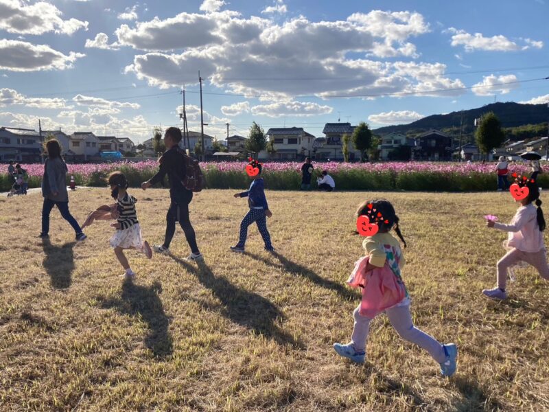 史跡中宮寺跡歴史公園へコスモス散策に出かけました🌺一面に咲いているコスモス畑の中は子ども達の目線の高さにお花があり、別れ道がくると「あっち?あれ?こっち!」と選びながら自由に走りまわってまるで迷路の中に入り込んでしまった …
