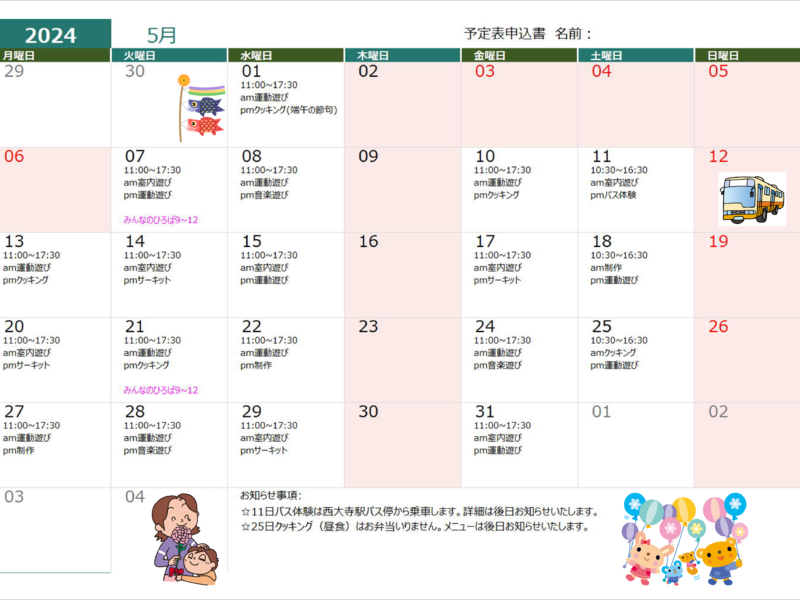5月の予定が出来ました🤗みなさんGWの予定は決まりましたか~?バス体験はどこに行きましょうかね~🚌