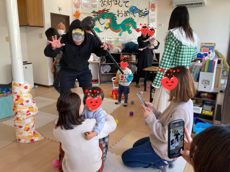 「節分行事」を行いました🤗 みんなのひろばでは就園前の小さな子ども達へ節分の音楽に乗せてかわいらしい鬼さんがやってきてくれました👹生まれて初めて見たかもしれない鬼さんに泣いちゃう子や勇敢にボールを投げている子そしてその姿 …