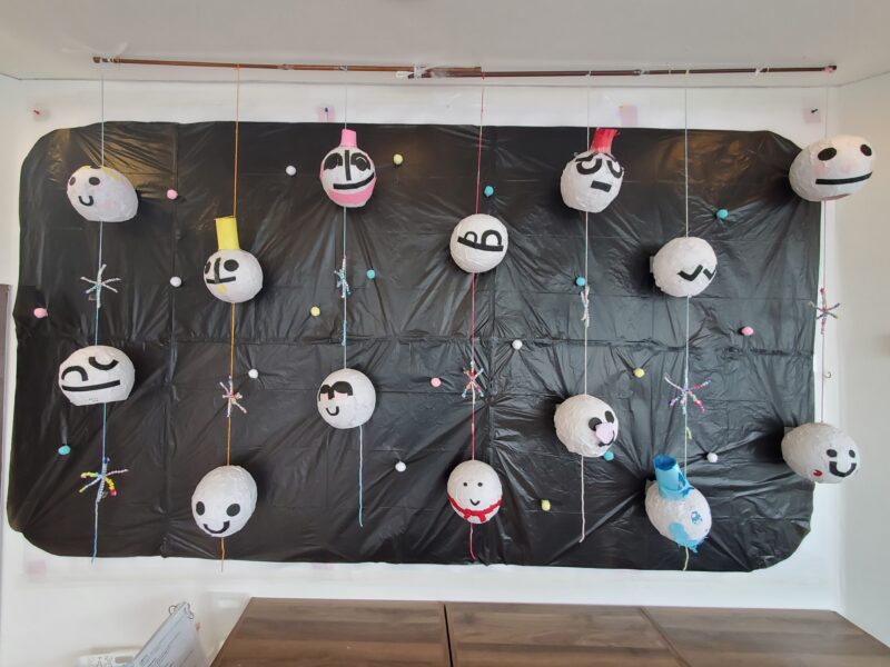 2月の壁面「雪だるまと氷の結晶」が出来ました⛄目や口、帽子やマフラーをくっつけて張り子のかわいらしい雪だるま完成です😊キラキラビーズの小さな穴にモールを指し込むコツをつかんだら、そこからはみんな真剣な顔で集中して氷の結晶 …
