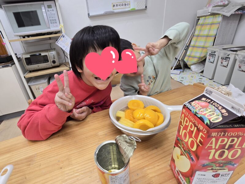 昼食クッキングで「ホットドッグ🌭」「クリームシチュー🍲」「フルーツポンチ🍌」を作りました😊 ホットドッグチームはホットプレートでウインナーと千切りにしたキャベツ(カレー味)をじっくり焼いてくれました✨ クリームシチューチ …