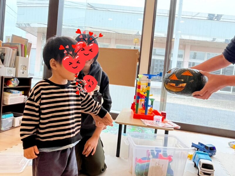 10月3回目のみんなのひろばが開催されました😊今回は「ハロウィンイベント🎃」カボチャのシールやボンボリを貼ってハロウィンおやつバッグを作りました~👜 みんな集まってお部屋をくら~くして待っていたら、ローソクの火で目や口が …