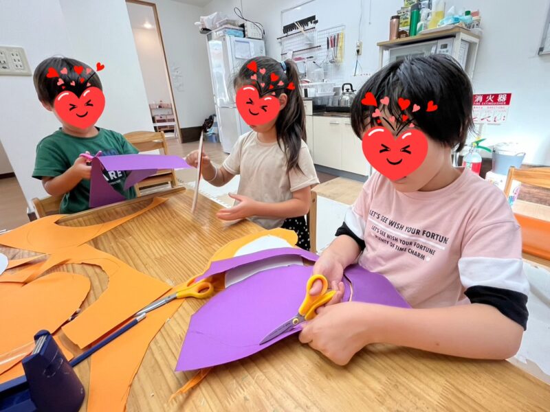 10月の壁面制作スタート!1年目に作った壁面をパワーアップして再制作するそうです😧厚紙と色画用紙を切って順番に貼りつけてアルミホイルを巻いていきますと。。ホクホクのあま~いアレ完成です🍠