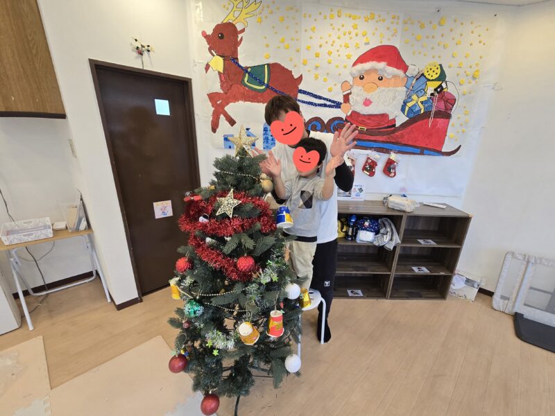 クリスマスツリーの飾りつけをしました😊キラキラモールを巻きつけて、飾りもたくさんひっかけて、最後は電球をピカピカ点灯式です✨✨ クリスマスツリー完成!!これで12月の準備もバッチリです🎄🫎🎅