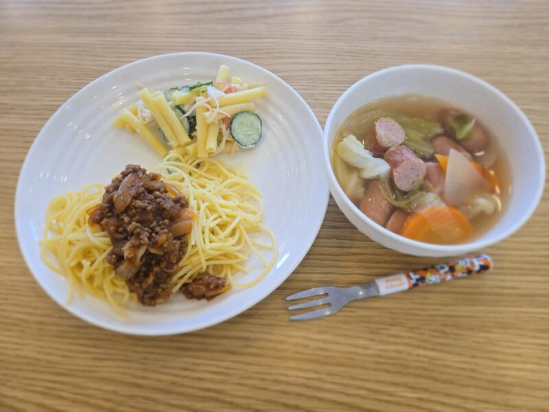 昼食クッキングで「ミートソーススパゲティ」「ポトフ」「マカロニサラダ」を作りました😊 そうめんやうどんはあったけどもしかしたらパスタ系は初めて作るかもしれない。。。😓挽き肉とみじん切りにした玉ねぎを一緒に炒めてソースを加 …