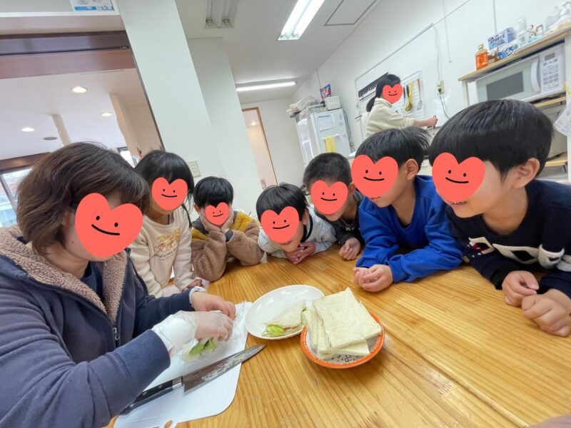 昼食クッキングで「サンドイッチ」「ジャーマンポテト」を作りました😊年中さんから小3まで10人の子ども達全員が仲良く楽しく料理してくれました🤗困っているお友達がいればそっと手伝ってくれている子がいたり、みんなでパンのみみを …