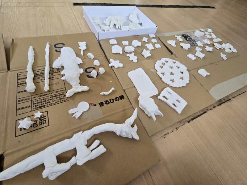 12月の壁面制作スタート!今回は紙ねんどを使って型抜きや好きなものを作ってもらいました😊出来てきたのは、主にお星さま☆と映画のキャラクターとネコざめとスマホなどなど😯さてどんな壁面になるのかお楽しみに~😘