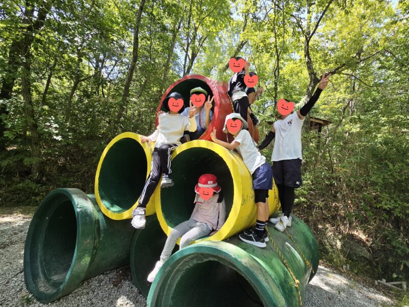 黒髪山キャンプフィールドへ「デイキャンプ」に行ってきましたpart2😊 さっそく昼食準備🎵お兄ちゃんお姉ちゃん達がテキパキと配膳してくれています👍みんなたくさん食べてパワー満タン! 午後から土管・木のエリアへゴーゴー!上 …